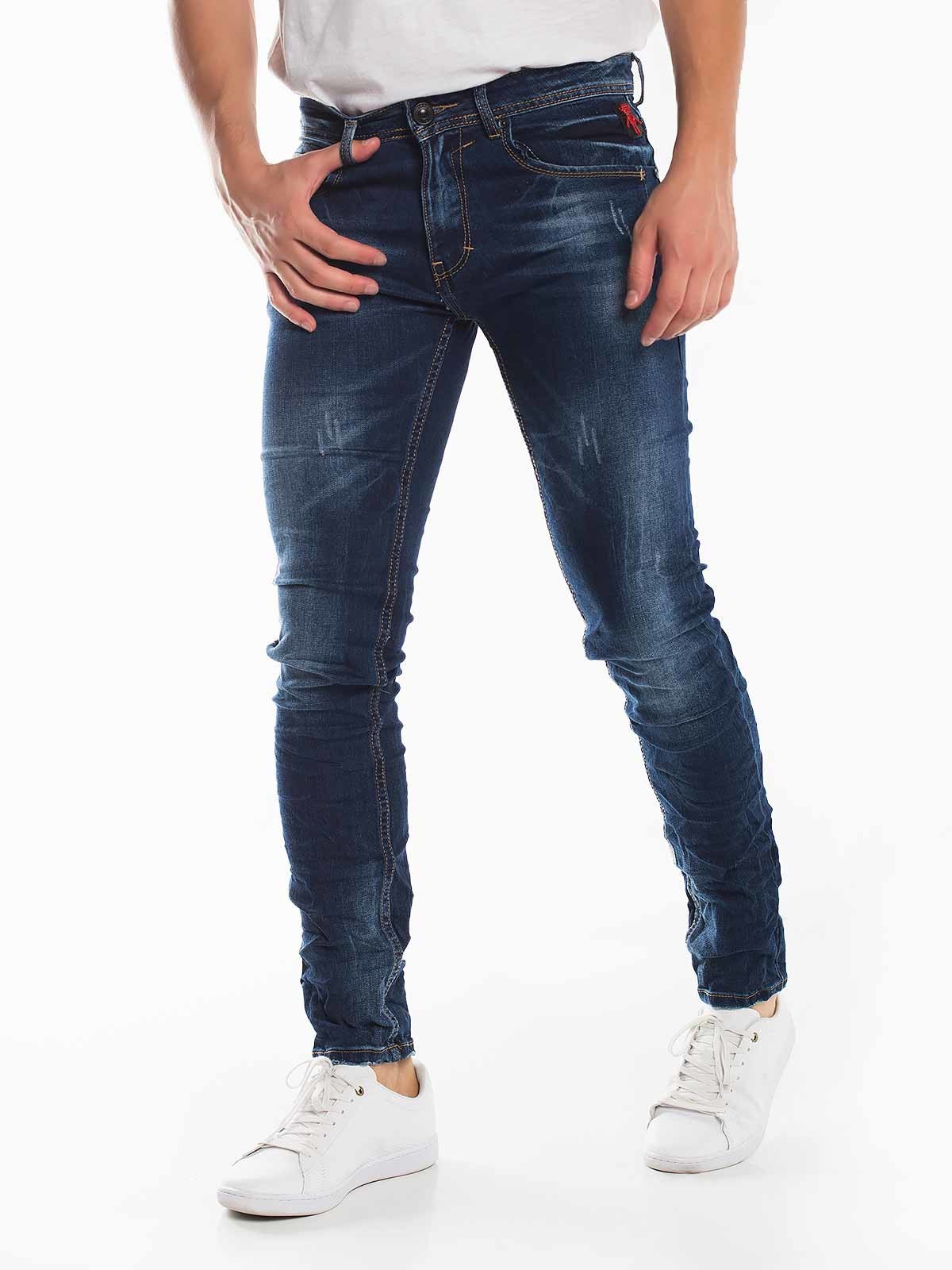 Calças ganga jeans slim para homem, Lavagem manchada com rotos leves. 5 bolsos aperto de botões.
