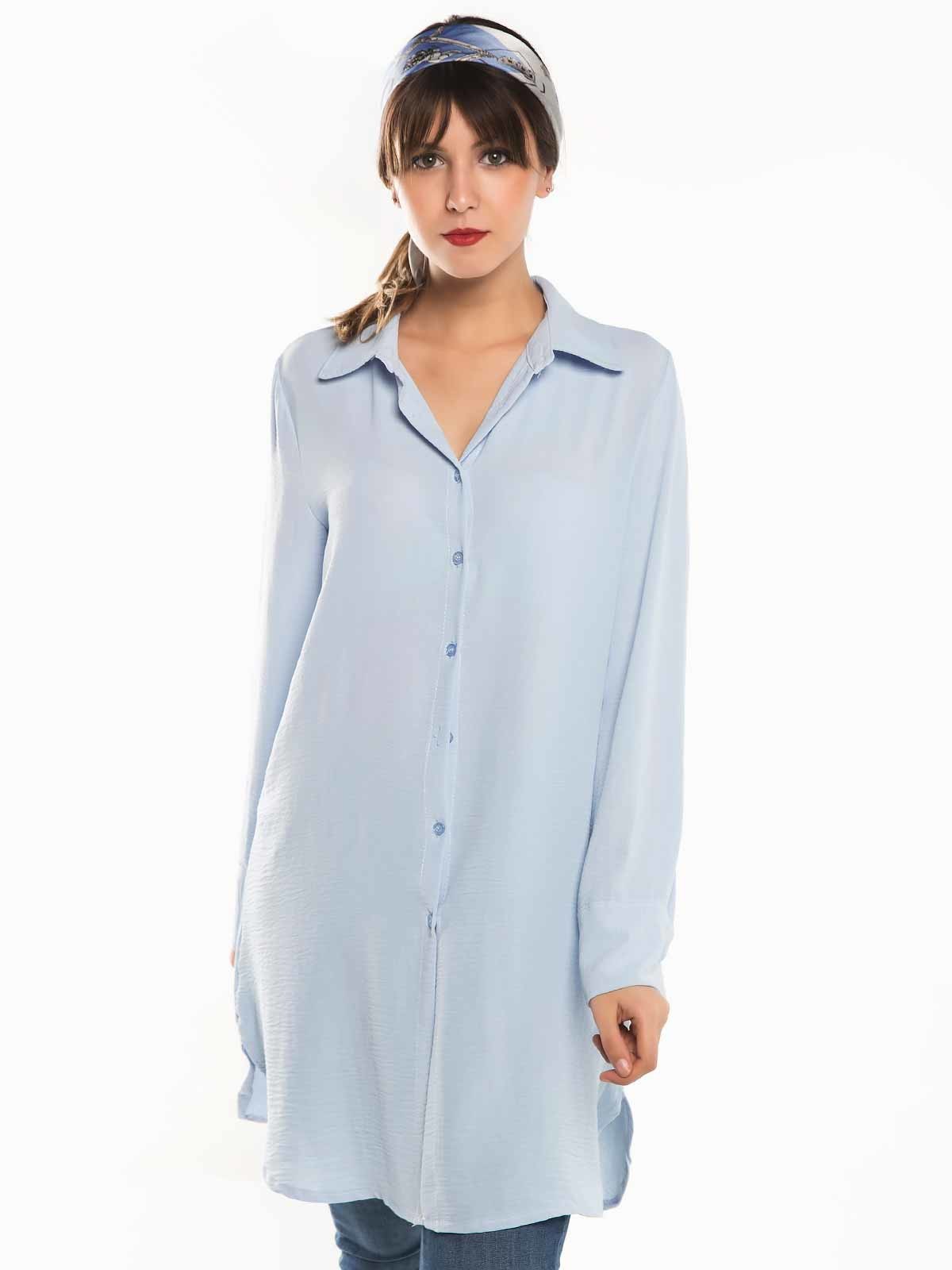 Camisa oversized comprida arredondada em baixo manga comprida com botões