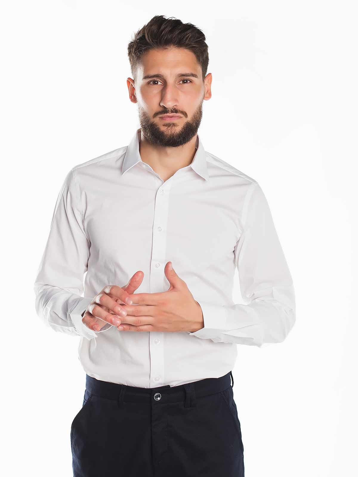 Camisa slim fit formal em algodão com elastano para maior conforto. Camisa de gola italiana punhos com dois botões.