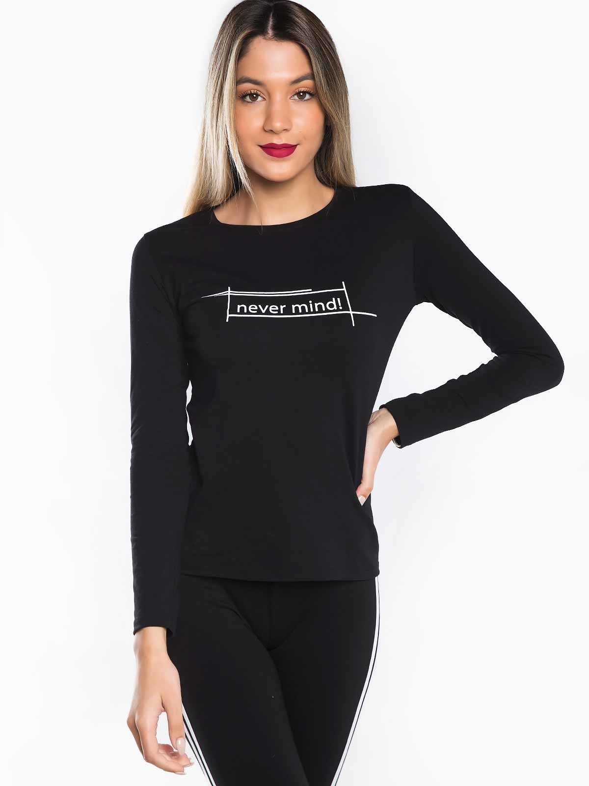 Camisola básica estampado never mind manga comprida decote redondo