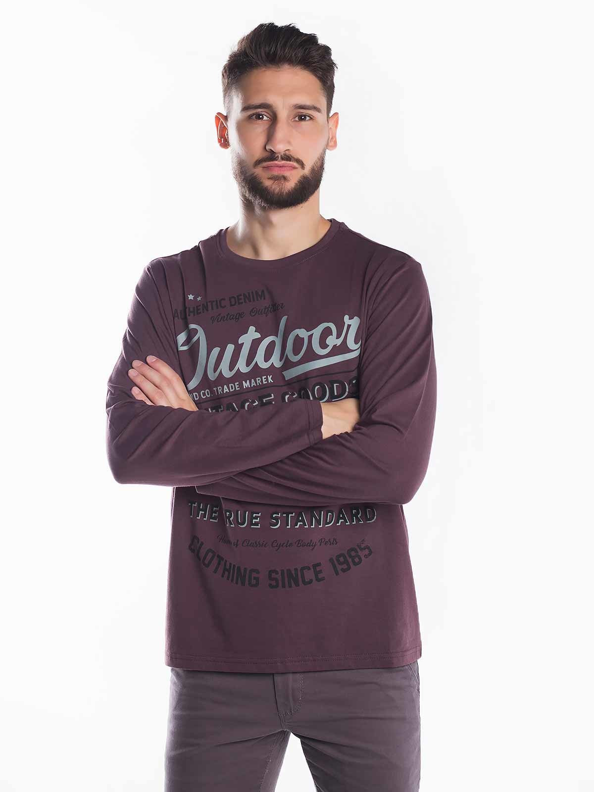 T-shirt manga comprida estampada. T-shirt em algodão decote redondo. O modelo está a vestir tamanho M