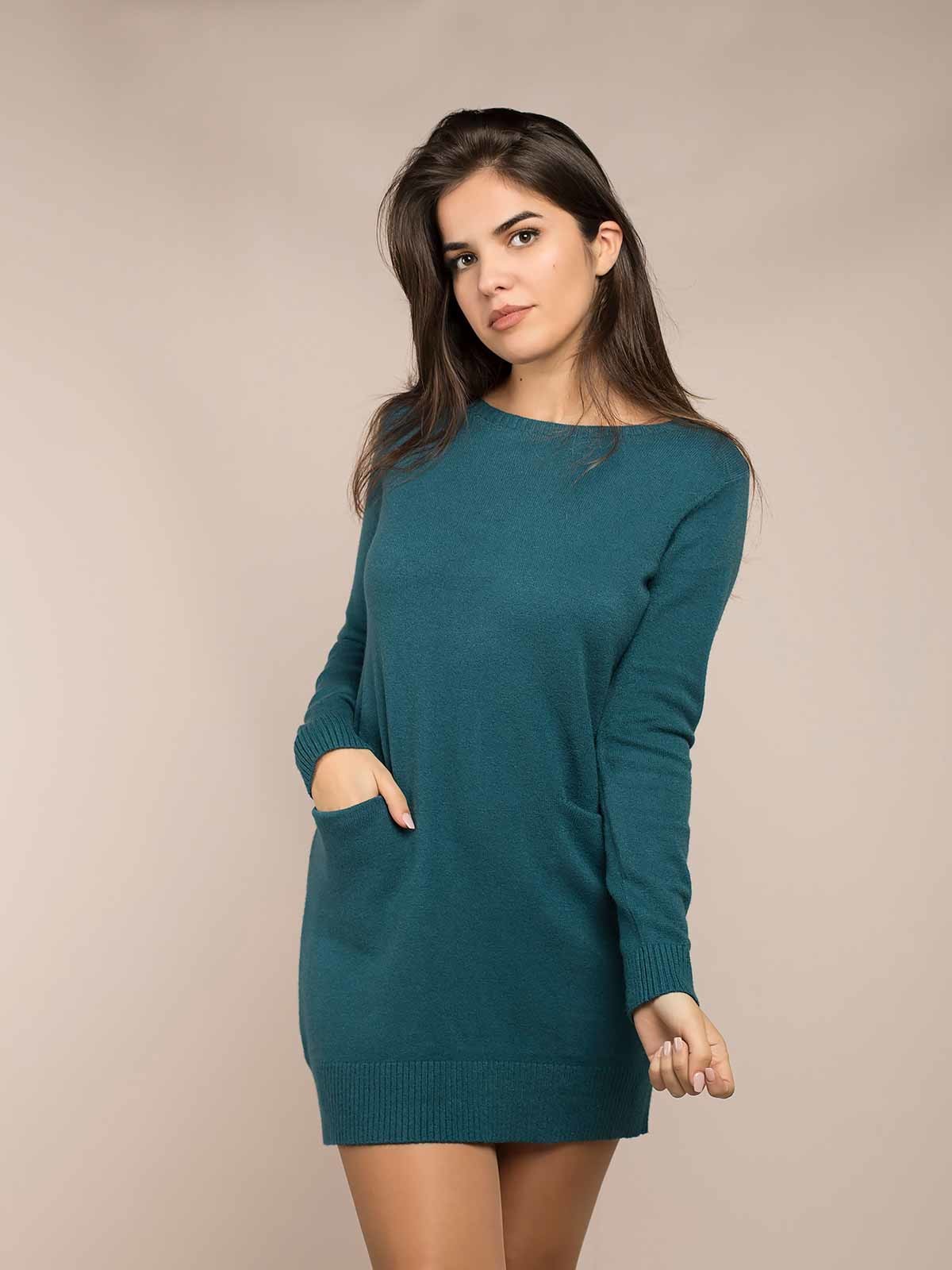 Vestido túnica malha com bolsos na frente A modelo esta a vestir tamanho S/M